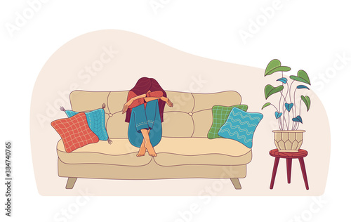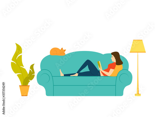 Muž sní o cestování, turistika, trekking ležící na pohovce doma, ploché vektorové ilustrace. Letní dovolená, plánování cesty.