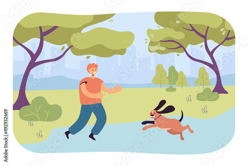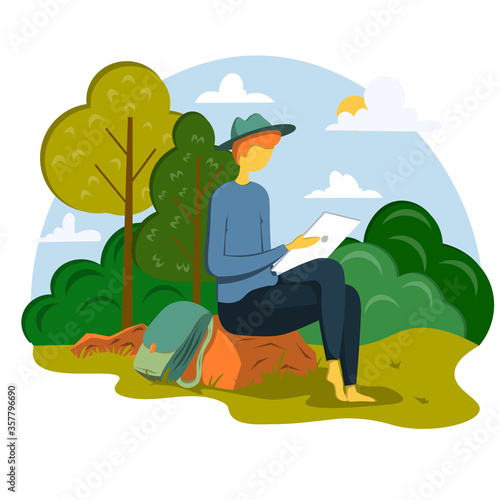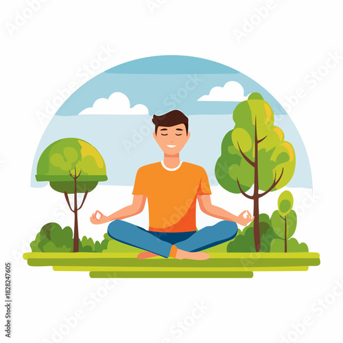 Muž sází strom v městském parku, plochá vektorová ilustrace. Dobrovolník, ekolog, který pomáhá zachránit planetu. Ochrana životního prostředí, ekologie, dobrovolnictví, záchrana přírody.