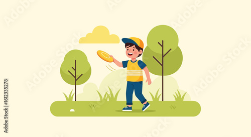 Muž loví na jezeře. Rybář drží rybářský prut. Plakát vektorového konceptu.