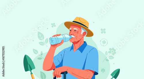 Usmívající se muž zahradník zalévání rostlin izolovaných na bílém pozadí. Muž zemědělský pracovník péče o rostoucí strom sazenice vektorové ilustrace. Zahradnictví nebo zahradnictví farm Life concept