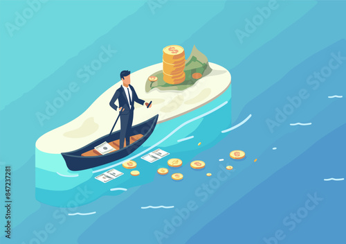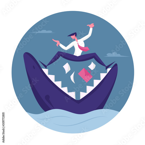 Muž pomáhá zachránit život potápějícího se podnikatele házejícího bóje vektor. Obchodní konzervátor a záchrana z konceptu bankrotu. Pojištění a finanční podpora