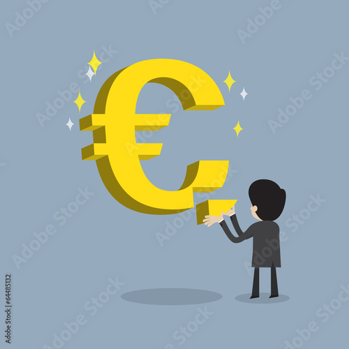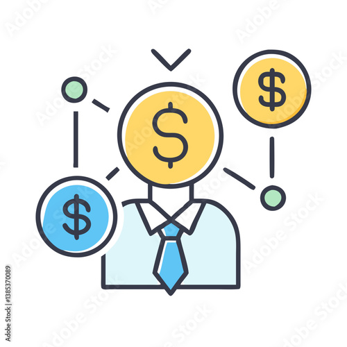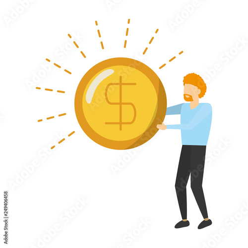 Muž drží peníze mince v ruce vektorové ikony. Podnikatel s dolarem izolovaných na bílém pozadí. Šťastný podnikatel darující hotovost, získání platu nebo odměny za loterii
