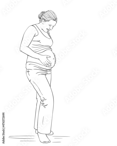 Muž manžel objímání těhotná žena Žena vektorové ikony izolovaných na bílém pozadí dítě narození pozice koncept.