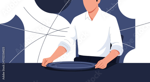 Mladý muž ve sluchátkách poslouchá zvukový program, hudbu, audioknihu na smartphonu, ploché vektorové ilustrace. Podcasting, online vzdělávání, rozhlasový podcast.