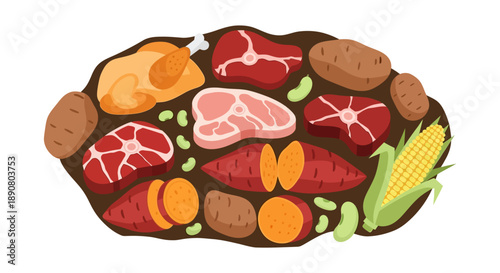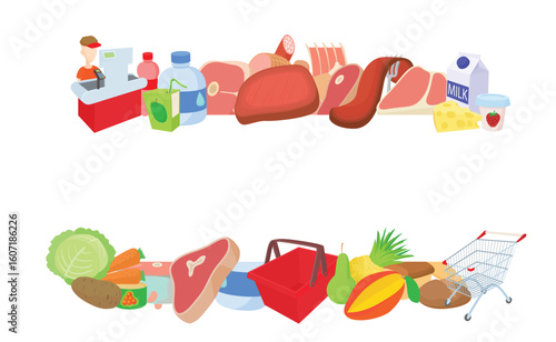 Muž v pyžamu objednává jídlo online pomocí aplikace mobilního telefonu z domova. Potraviny a dodávky potravin koncept ilustrace. Vektor web design šablony. Obchod s potravinami online.