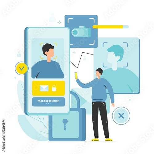 Autobus. Muž na invalidním vozíku nastupuje do městského autobusu s bezbariérovou přístupovou rampou, ploché vektorové ilustrace. Životní styl osoby se zdravotním postižením. Dostupnost městské hromadné dopravy. Bezbariérové prostředí.