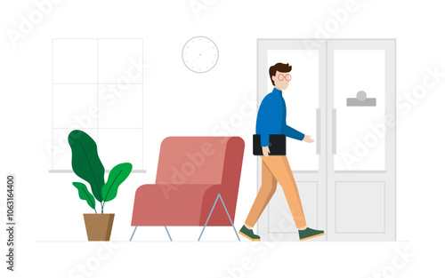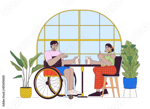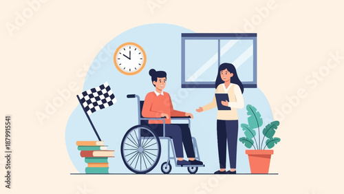 Muž na invalidním vozíku jezdit po schodech vektorové ilustrace. Bezbariérové prostředí a sociální přizpůsobení pro osoby se zdravotním postižením plochý design