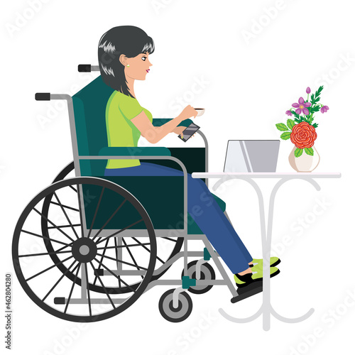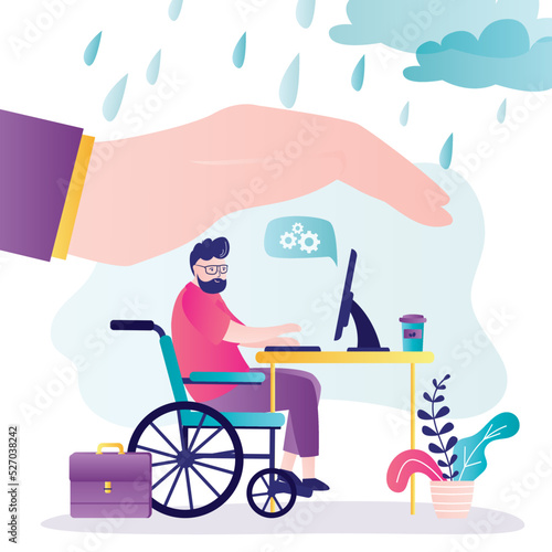 Muž na invalidním vozíku pomocí speciálního výtahu vektorové ikony izolovaných na bílém pozadí