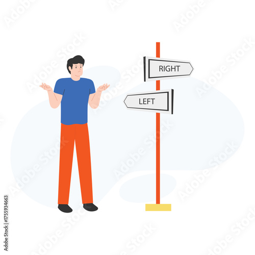Člověk dělat život volba stojící v přední části Ano a ne směr dopravní značky, ploché vektorové ilustrace. Rozhodnutí o změně života.