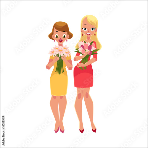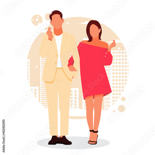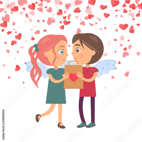 Muž dělat překvapení pro ženu dávat dárková krabička vektorové ilustrace izolovaných na bílém pozadí. Milující přítel představuje zabalený balíček přítelkyni. Oslava narozenin a pozdrav koncept