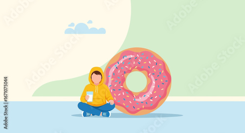Muž na čtyřkolce vyjíždí ze silnice. Extrémní sport a dobrodružství vektor koncept ilustrace. Muž rafting sám na horské řece. Šablona návrhu webových stránek.