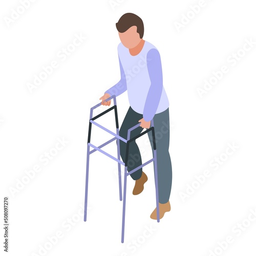 Muž na žebříku hledá v budoucnosti vektorové ikony izolovaných na bílém pozadí