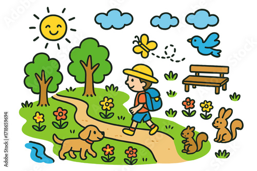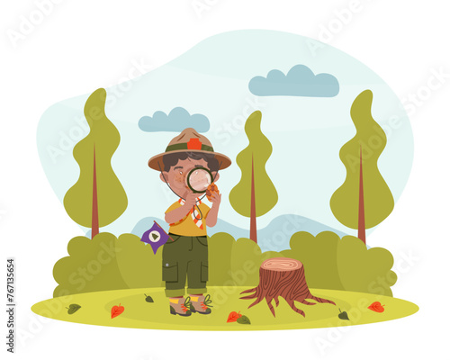 Muž sbíral jedlé houby v podzimním lese. Košík plný hub. Venkovní podzimní sezóna hobby koncept vektorové ilustrace.