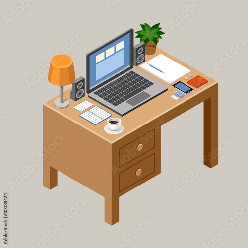 Muž hrát solitaire hra na notebooku sedí u stolu stůl ikona vektor izolovaných na bílém pozadí