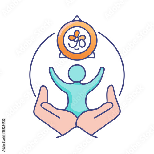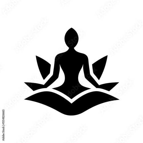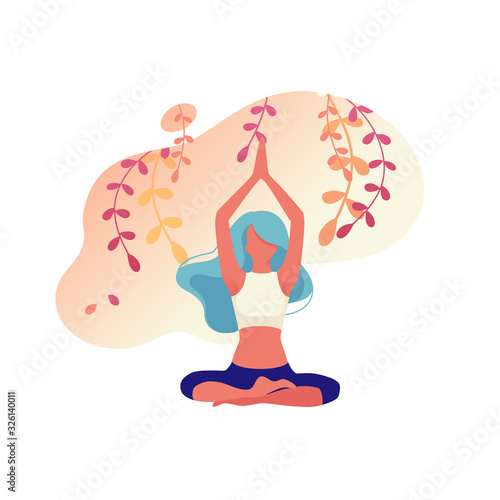 Vrstvený papír řezané květiny A Muž cvičit padmasana sedí v lotosové pozici, vektorové ilustrace v papírové umění stylu. Meditace, kurzy jógy, duševní zdraví, relaxace.