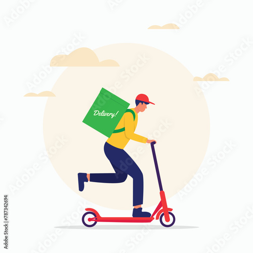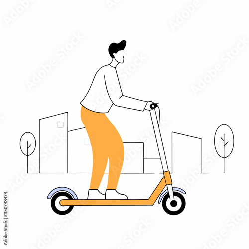 Muž na koni elektrický skútr vektorové ikony. Lidé používající ekologickou dopravu izolovaných na bílém pozadí