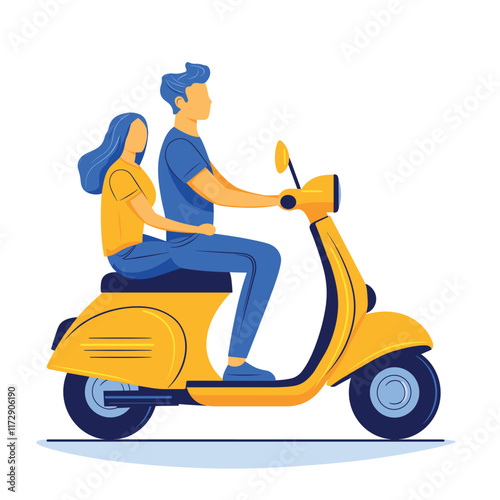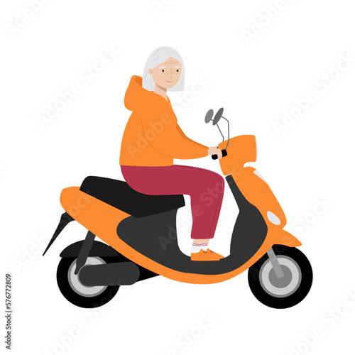 Muž na koni moped skútr vektorové ikony. Motocyklový jezdec izolovaných na bílém pozadí. Postava motocyklisty