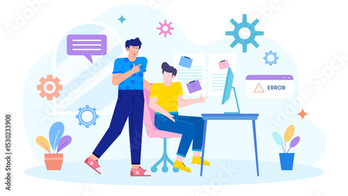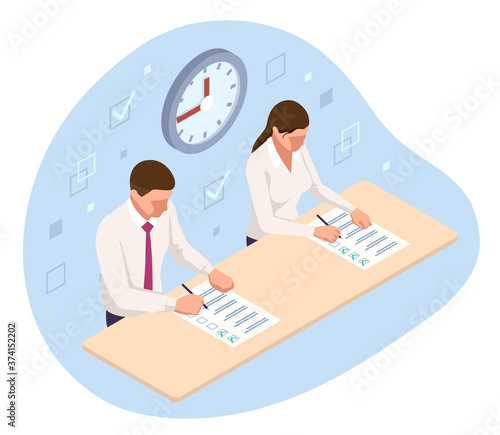 Mladý muž běží na běžeckém pásu, trénink s osobním trenérem online, ploché vektorové izometrické ilustrace. Online fitness, domácí cvičení, fitness blog.