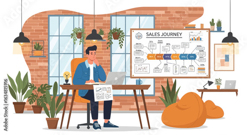 Muž sedět v křesle a hrát na kytaru doma. Volný čas v útulném domácím interiéru. Koncept ilustrace. Vektor web design šablony.