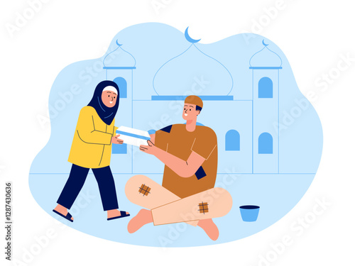 Muž sedí na záchodové míse, ploché vektorové ilustrace. Toaletní rutina.