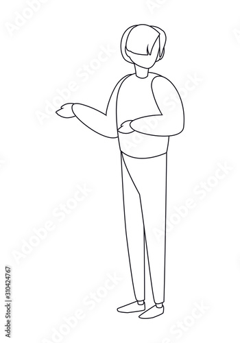 Muž stojící s laptop zadní pohled vektorové ikony. Na volné noze mužská postava izolovaných na bílém pozadí