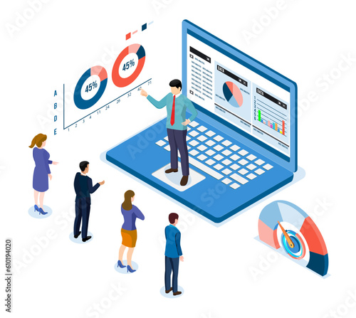 Student studuje cizí jazyk online, sledování video lekce, ploché vektorové izometrické ilustrace. Jazykové vzdělávání online kurzy, distanční vzdělávání.
