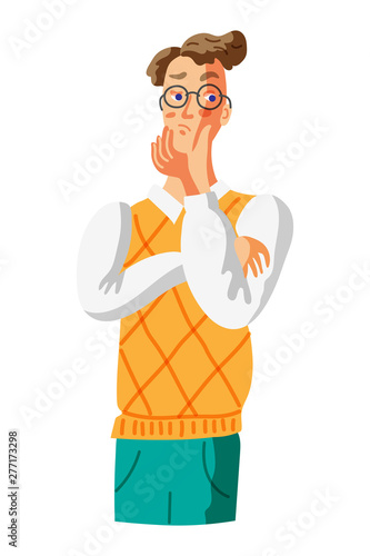 Muž trpí hluk pokrývající uši vektorové ikony izolovaných na bílém pozadí