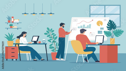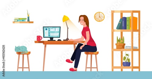 Muž mluvit mobilním telefonem a pracovat s notebookem v útulném interiéru. Home office koncept ilustrace. Vektor web design šablony. Muž pracující doma.