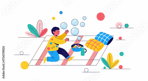 Muž wakeboarder je tažen vodní skútr na koni wakeboard, ploché vektorové ilustrace. Letní plážová aktivita, extrémní vodní sporty na wakeboardu.