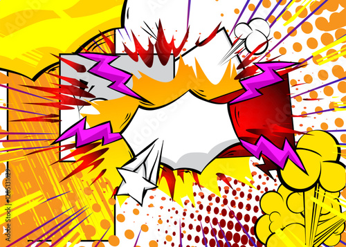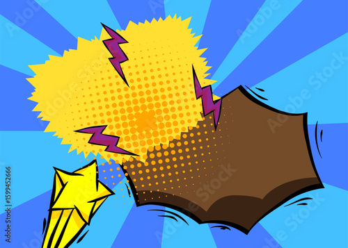 Muž se snaží skrýt před výbuchem. Vektorová ilustrace ve stylu pop art