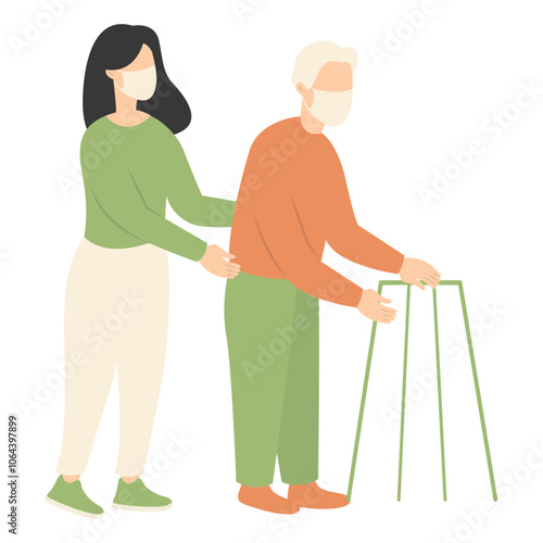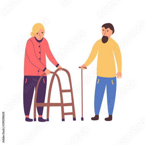 Muž se snaží chodit s chodci zařízení vektorové ikony izolovaných na bílém pozadí