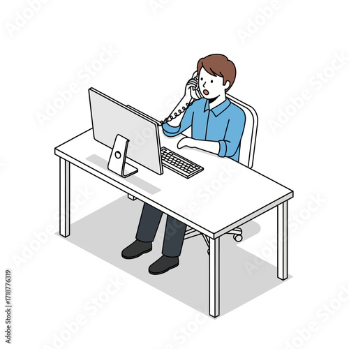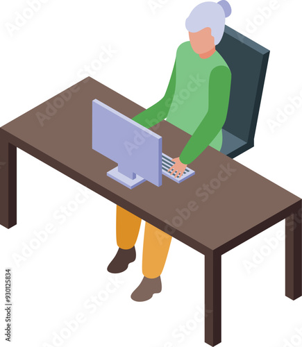 Muž pomocí cloud bank service icon vector. Správa majetku, diskuse o rozpočtu konference. Chlap sedí u stolu před počítačem