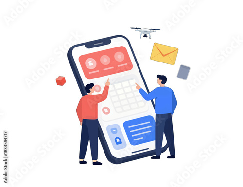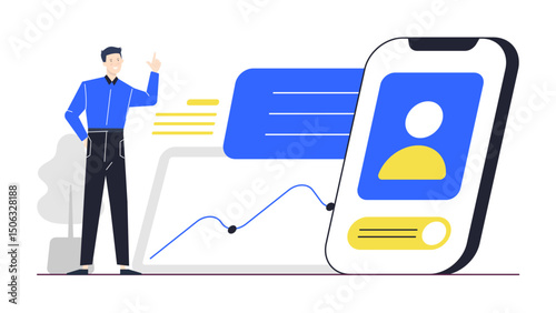Muž pomocí mobilní aplikace pro carpooling, objednávání auto pro sdílení nebo pronájem, ploché vektorové ilustrace. Online sdílení aut, půjčovna aut.