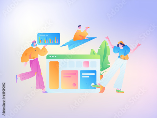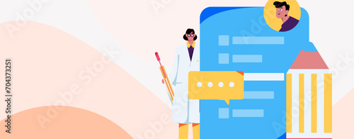 Muž pomocí aplikací pro mobilní telefony. Žena zkontrolovat dokumenty před odjezdem na výlet. Cestovní přípravy koncept ilustrace. Vektor web design šablony.