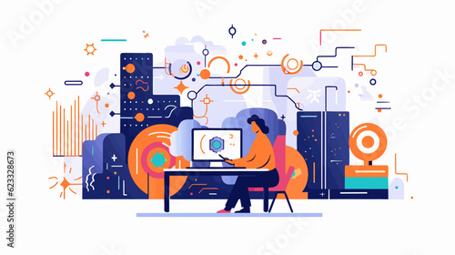Člověk chodí po ulici s přilbou na čerstvý vzduch. Lidé, kteří nosí masku na ochranu koronaviru covid. Vektorová ilustrace koncepce znečištění ovzduší. Dýchací systém.