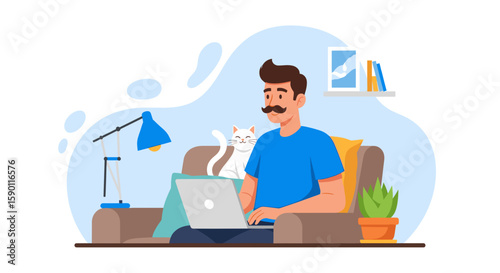 Muž mytí nádobí v kuchyni, ploché vektorové ilustrace. Domácí práce, domácí práce, Úklid, každodenní rutina.