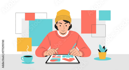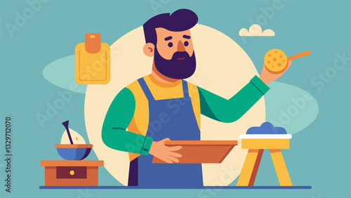 Muž mytí nádobí v kuchyni, ploché vektorové ilustrace. Domácí práce, domácí práce, Úklid, každodenní rutina.