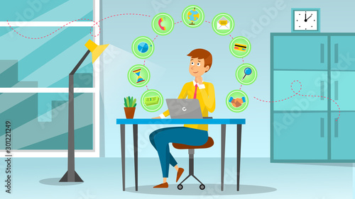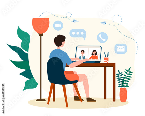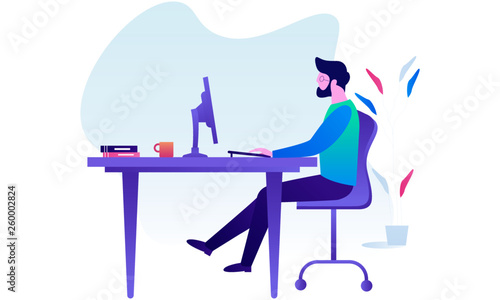 Muž s mobilním telefonem v kavárně vektorové ikony. Mužská postava surfování na internetu sedí u stolu izolovaných na bílém pozadí