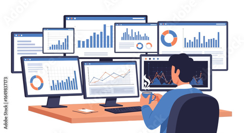 Freelancer muž pracující doma vektorové ilustrace. Matka hraje s dítětem syna, zatímco otec dělá práci na dálku. Šťastná rodina tráví čas v bytě