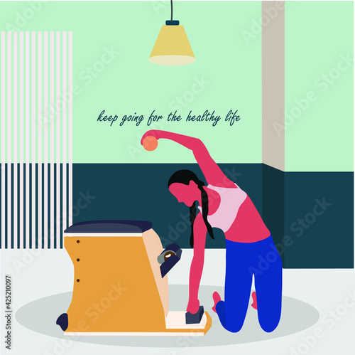 Muž pracuje v posilovně. Koncept zdravého životního stylu vektorová ilustrace v plochém stylu. Fitness a sportovní vybavení.