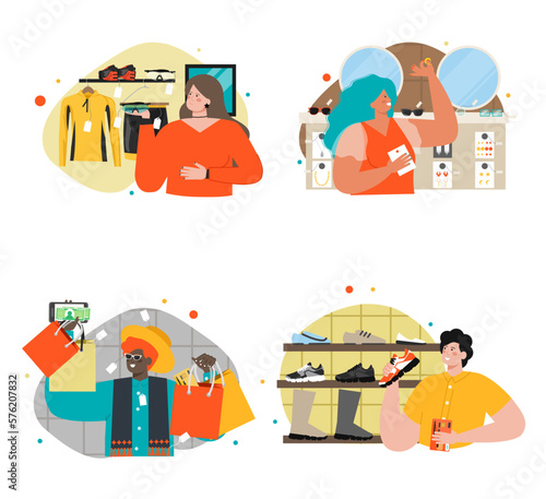 Lékařské užívání konopí a lidé vektorová scéna. Marihuana, konopný olej CBD, sativa rostlinná Lékárna. Distribuce konopných produktů ilustrace