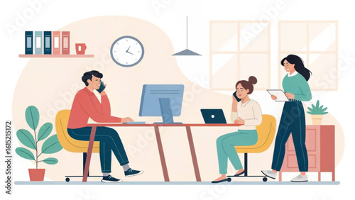 Vektorová ilustrace zdravotně postižené mladé ženy trénuje s činkami, získává podporu lékaře fyzioterapeuta muže v rehabilitačním centru. Lékařská péče a rehabilitace koncept plochý styl designu.