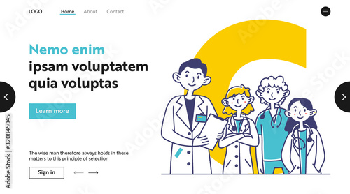 Lékařská kontrola vektorové webové stránky šablony, webové stránky a vstupní stránky design pro vývoj webových stránek a mobilních stránek. Doktor při pohledu na dívku na dlani s lupou. Koncepce lékařské diagnostiky.