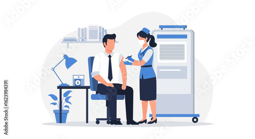 Fluoroskopické vyšetření v nemocnici, klinice, ploché vektorové ilustrace. Pacientka ležící na lékařském stole, rentgenový stroj pořizující snímek zlomené nohy, lékaři při pohledu na rentgenové obrázky. Zlomenina kosti, zranění.