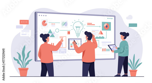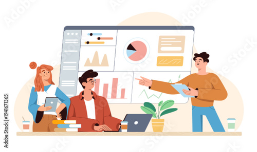 Lékařka žena v bílém plášti kontroluje svého pacienta pomocí lékařského stetoskopu na klinice, vektorová plochá ilustrace. Medicína a zdravotnictví, koncepce lékařské prohlídky a konzultace.