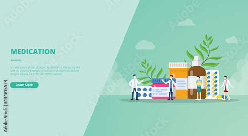Medicína pomoci vektorové ploché ilustrace. Lékárnička, injekční stříkačka s červenou injekcí, náplasti, teploměr, láhev s prášky, stříkací láhev. Koncept domácí lékařské péče pro webový banner, webovou stránku atd.