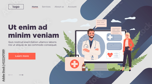 Šablona vstupní stránky medicíny. Koncept designu vektorového plochého stylu pro vývoj webových stránek a mobilních stránek pro lékaře a lékaře. Zdravotní péče, lékařské služby.