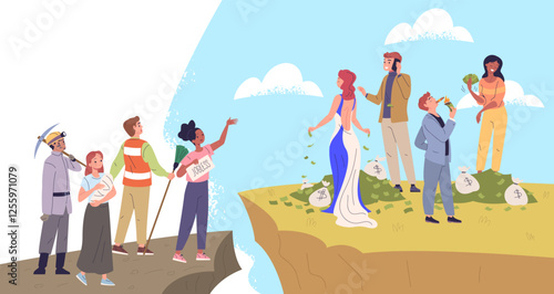 Středověká rytířská klání. Vektorové ilustrace královské rodiny při pohledu na boj mezi namontovanými rytíři, kteří nosí brnění a používají kopí. Středověký rytířský turnaj plochý styl designu.
