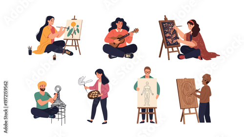 Středověcí lidé mužské a ženské kreslené postavičky nastavit plochý vektor izolované ilustrace. Kněz, rolníci, kat, morový lékař, kovář, hudebník, zpěvák, Královský dvořan. Středověké oblečení