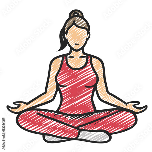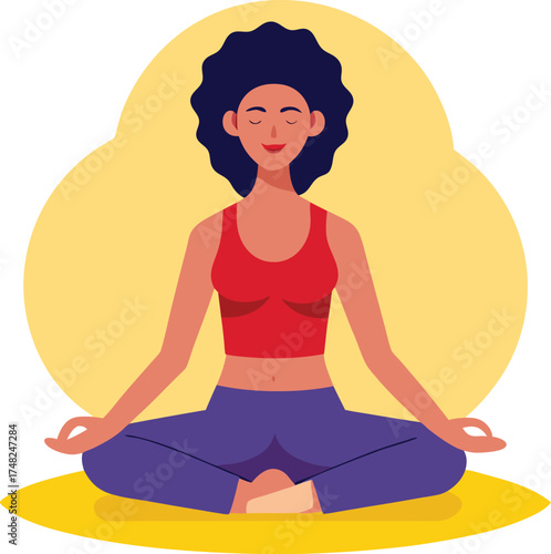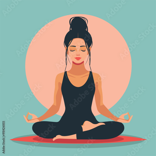 Meditující žena s řečovou bublinou v retro pop artovém komiksovém stylu. Mentální rovnováha a koncept jógy.